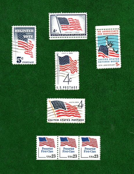 - The U.S. flag is depicted on postage stamps